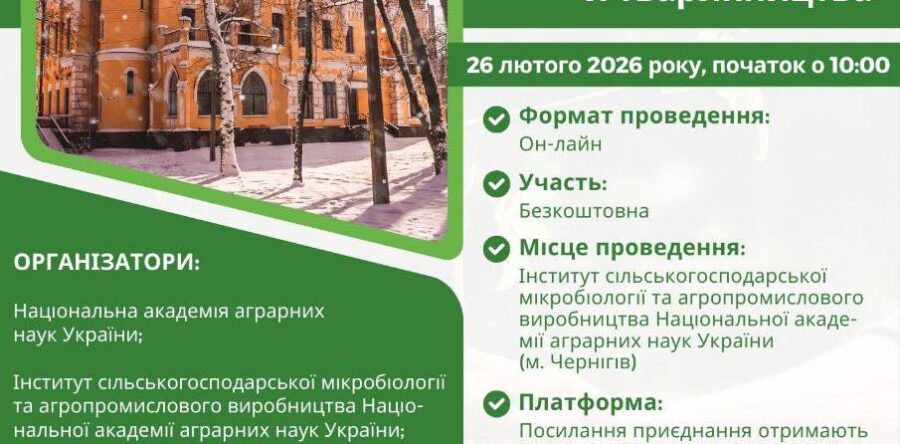 Друзі, раді повідомити вам, що наш щорічний Всеукраїнський науково-практичний онлайн-семінар "Засоби біологізації для підвищення ефективності рослинництва й тваринництва" відбудеться 26 лютого 2026 року о 10:00!!! Семінар присвячений питанням інтеграції біологічних методів у сучасні технології росл ...