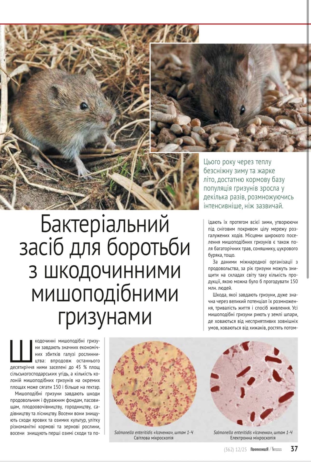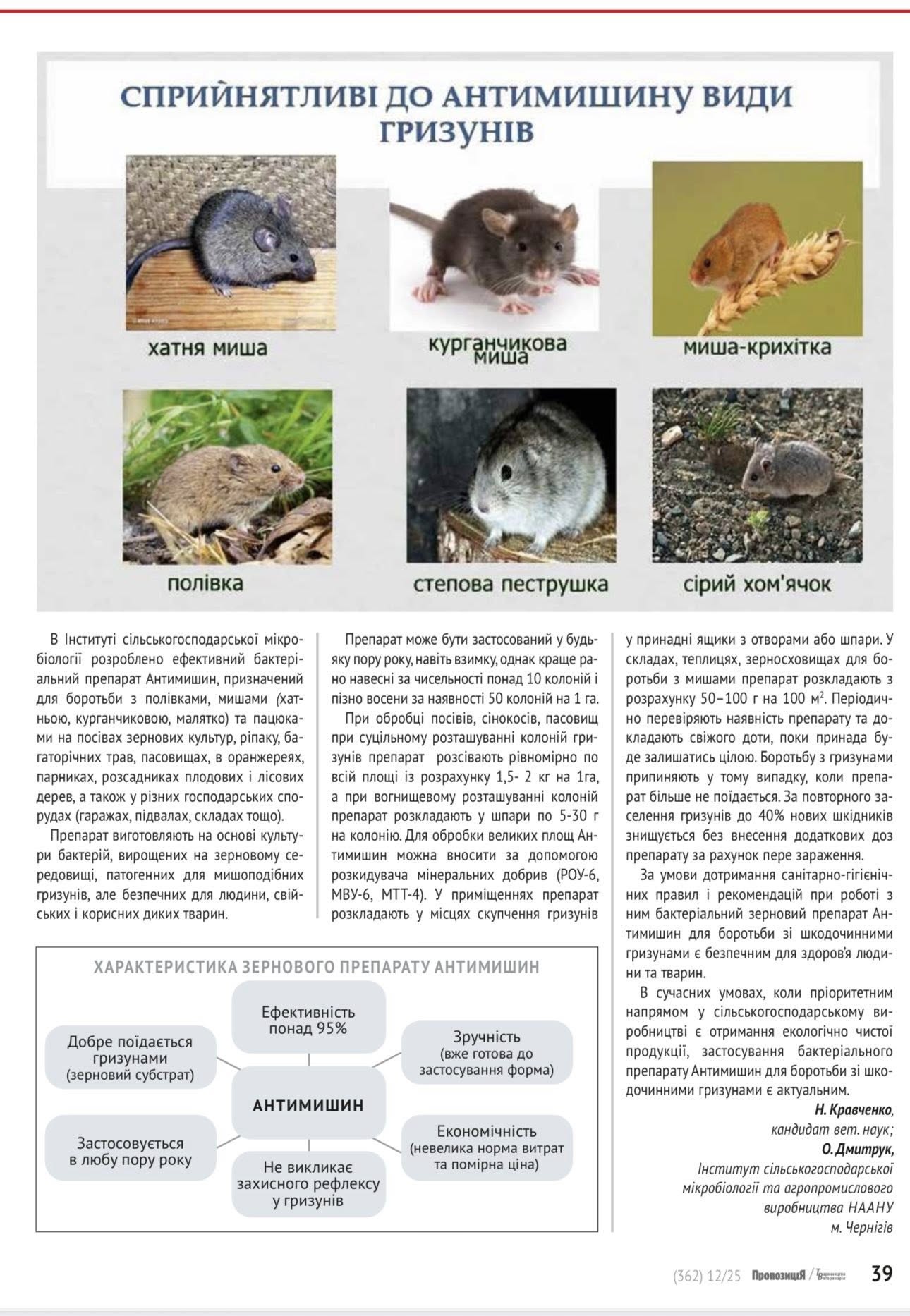 Нещодавно в журналі «Пропозиція» опубліковано статтю присвячену бактеріальному препарату ІСМАВ НААН для боротьби із мишоподібними гризунами – «Антимишин». Як вчасно зупинити проблему та не витратити зайвого? В статті зібрано обґрунтовані поради щодо застосування антимишину: