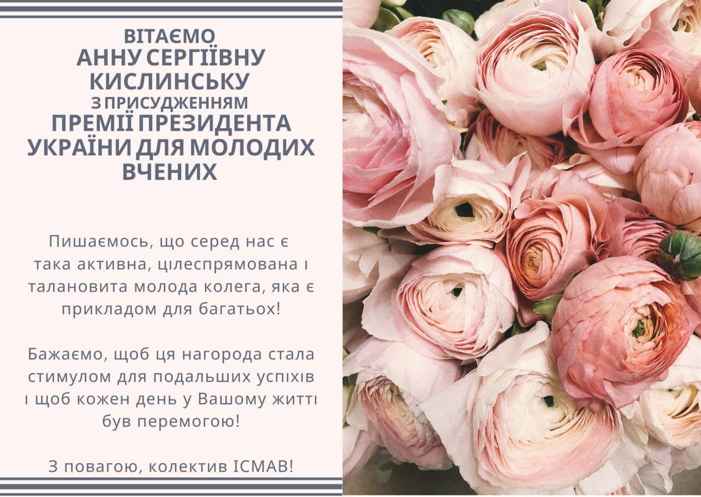 Щиро вітаємо з отриманням нагороди та бажаємо подальших наукових успіхів!