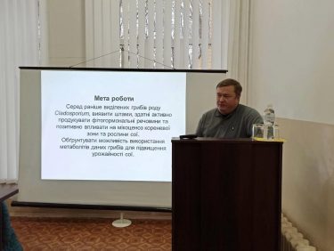 ✔️Тема дисертаційної роботи Юрія Ярмака: “Вплив грибів роду Cladosporium на мікоценоз кореневої зони та рослини сої”. Науковий керівник – Євгеній Копилов, д.б.н., с.н.с.