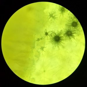 В лабораторії рослинно-мікробних взаємодій завершені цьогорічні дослідження з мікроорганізмами, які були виділені протягом вегетаційного періоду з кореневої зони сої у досліді за завданням 08.00.02.01.Ф “Дослідження впливу сапротрофних грибів, здатних до ендофітії з рослинами, на функціонування симбіотичної системи: рослини сої – Bradyrhizobium japonicum”.
