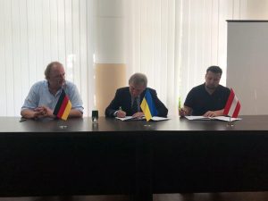Керівники німецько-австійської компаній GGT GmbH Global Green і Shied-group (Medical) Дірк Ленц, Данієль Каллінгер, біолог Лукас Крамбергер-Каплан і віце-президент компанії Ольга Назаренко 8-9 червня відвідали нашу наукову установу. В рамках візиту вони ознайомилися з діяльністю наукових лабораторій нашої установи і провели переговори по спільній науково-дослідній роботі. Результатом переговорів стало підписання угоди на проведення науково-дослідних робіт нашими мікробіологами і ще декілька спільних проєктів на перспективу потребують поглиблення і уточнення.