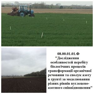 Лабораторія ґрунтової мікробіології продовжує виконувати завдання 08.00.01.01.Ф «Дослідження особливостей перебігу біологічних процесів трансформації органічної речовини та сполук азоту в ґрунті за моделювання різних рівнів вуглецево-азотного співвідношення». Дослідження проводяться на базі польового стаціонарного досліду, розпочатого у 2009 р., площею 4 га (ґрунт – чорнозем вилужений). Дослід передбачає вирощування у коротко ротаційній сівозміні чотирьох сільськогосподарських культур (картопля – ячмінь ярий – горох – пшениця озима) за різних систем удобрення (мінеральні різної інтенсивності, органічні та органо-мінеральні).